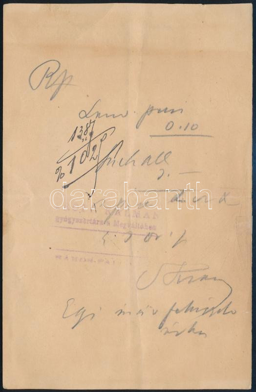 cca 1910-1920 Gyógyszerrecept "Kropp Kálmán gyógyszertára a Megvá... https://www.darabanth.com/de/431-Fernauktion/431.0/Kunst-Dokumente-andere-Sammelgebiete/Dokument~5000021/cca-1910-1920-Gyogyszerrecept-Kropp-Kalman-gyogyszertara-a-Megvaltohoz-pecsetjevel~II2772832