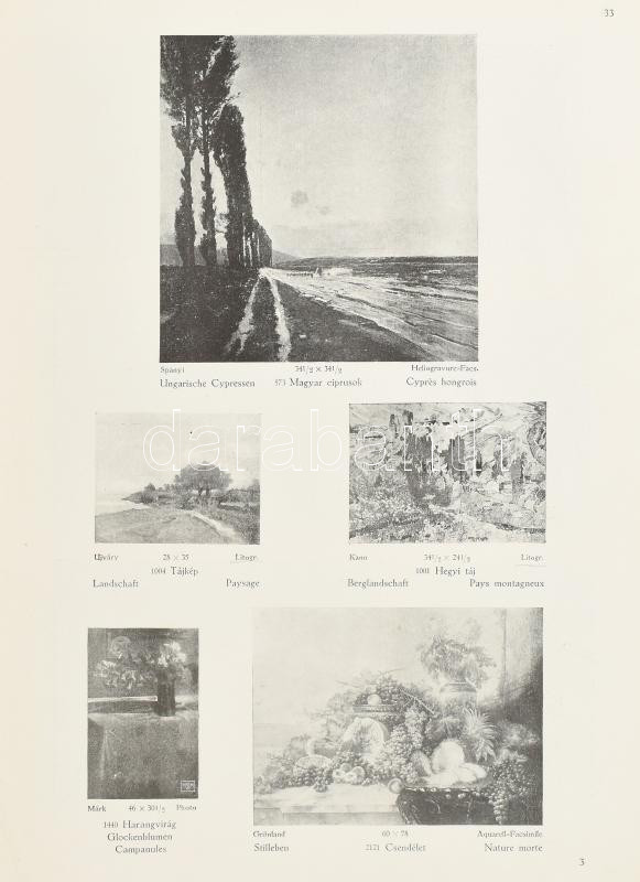 1913 Kiváló műlapok jegyzéke. Könyves Kálmán Értesítője 9. sz. Bp., Könyves Kálmán Magyar Műkiadó Rt., (4)+80 p. Fekete-fehér képekkel illusztrálva. Kiadói papírkötés, sérült, szétvált borítóval.