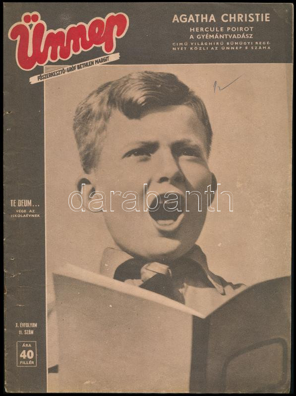 1943 Az Ünnep c. magazin X: évf. 11. szám, benne Agatha Christie regén... https://www.darabanth.com/de/431-Fernauktion/431.0/Kunst-Dokumente-andere-Sammelgebiete/Drucksachen~4000002/1943-Az-Unnep-c-magazin-X-evf-11-szam-benne-Agatha-Christie-regeny~II2766809