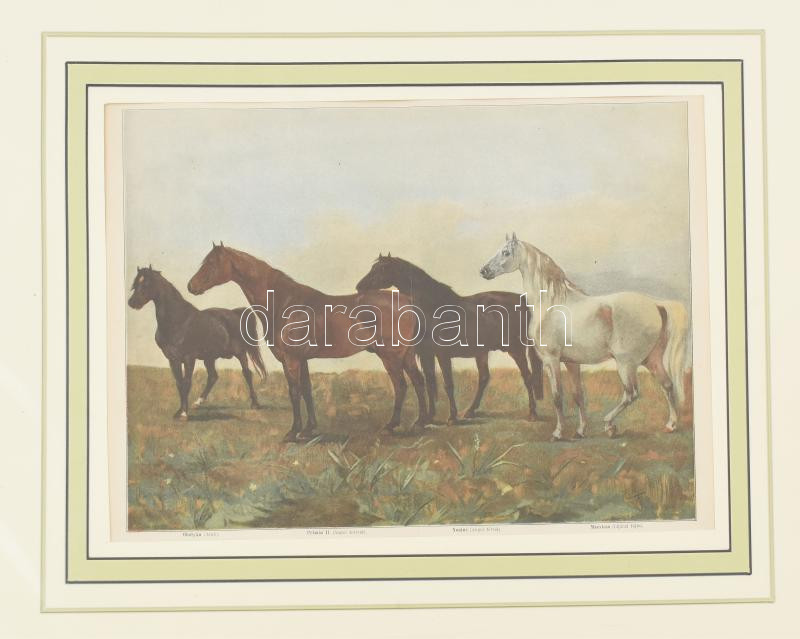 cca 1896 Pállya Celesztin (1864-1948) festménye után: Törzsmének a magyar állami ménesekben, nyomat, papír, jelzett a nyomaton, Pallas Nagy Lexikona, Bp., Posner-ny., paszpartuban, 20x26,5 cm