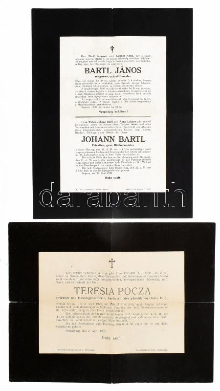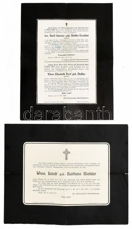 Beschreibung: cca 1913-1930 Sopron (Oedenburg), 4 db halálozási értesítő
