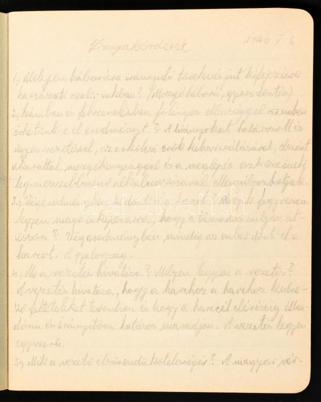 1940 Katonai továbbképzési füzet, kézzel írt https://www.darabanth.com/de/431-Fernauktion/431.0/Kunst-Dokumente-andere-Sammelgebiete/Militaria~3000008/1940-Katonai-tovabbkepzesi-fuzet-kezzel-irt~II2773946