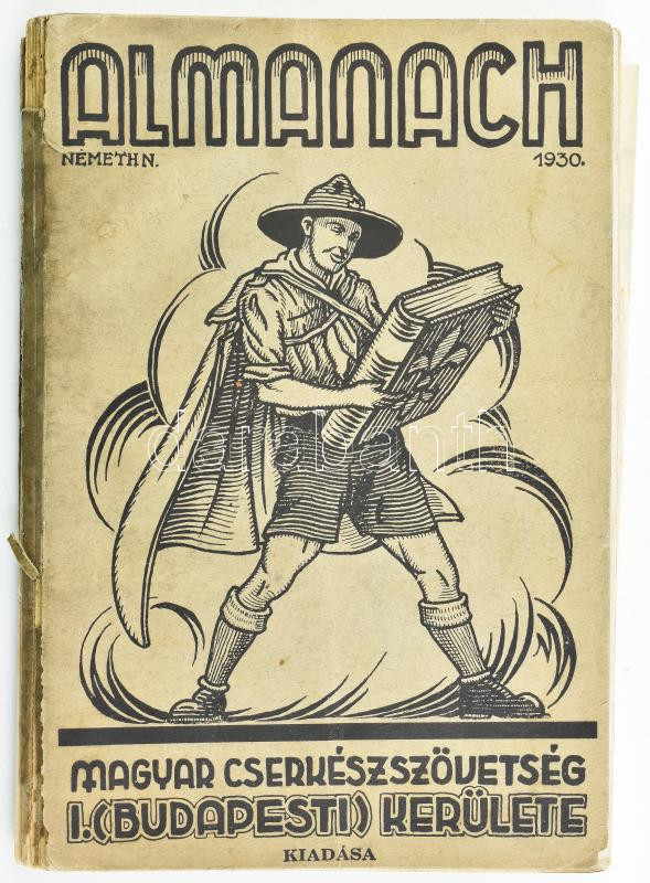 1930 "Almanach" a Magyar Cserkészszövetség budapesti I. kerületi kiadása, képekkel, behajtott térkép a cserkészcsapatok budapesti helyével (52×44 cm), 184p