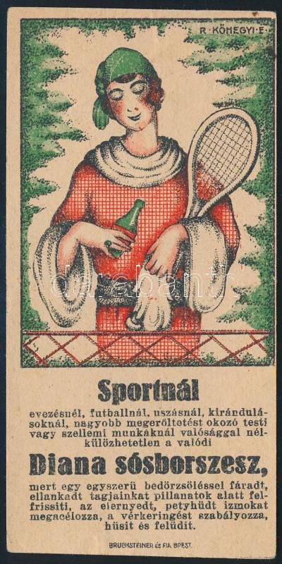 Diana sósborszesz számolócédula, Kőhegyi grafikája (Hölgy teniszütővel... https://www.darabanth.com/de/431-Fernauktion/431.0/Kunst-Dokumente-andere-Sammelgebiete/Werbungen~3000002/Diana-sosborszesz-szamolocedula-Kohegyi-grafikaja-Holgy-teniszutovel~II2769191