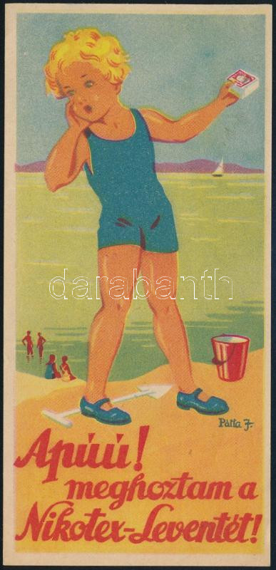 cca 1935 Nikotex-Levente számolócédula, szignózott, szép állapotban https://www.darabanth.com/de/431-Fernauktion/431.0/Kunst-Dokumente-andere-Sammelgebiete/Werbungen~3000002/cca-1935-Nikotex-Levente-szamolocedula-szignozott-szep-allapotban~II2773462