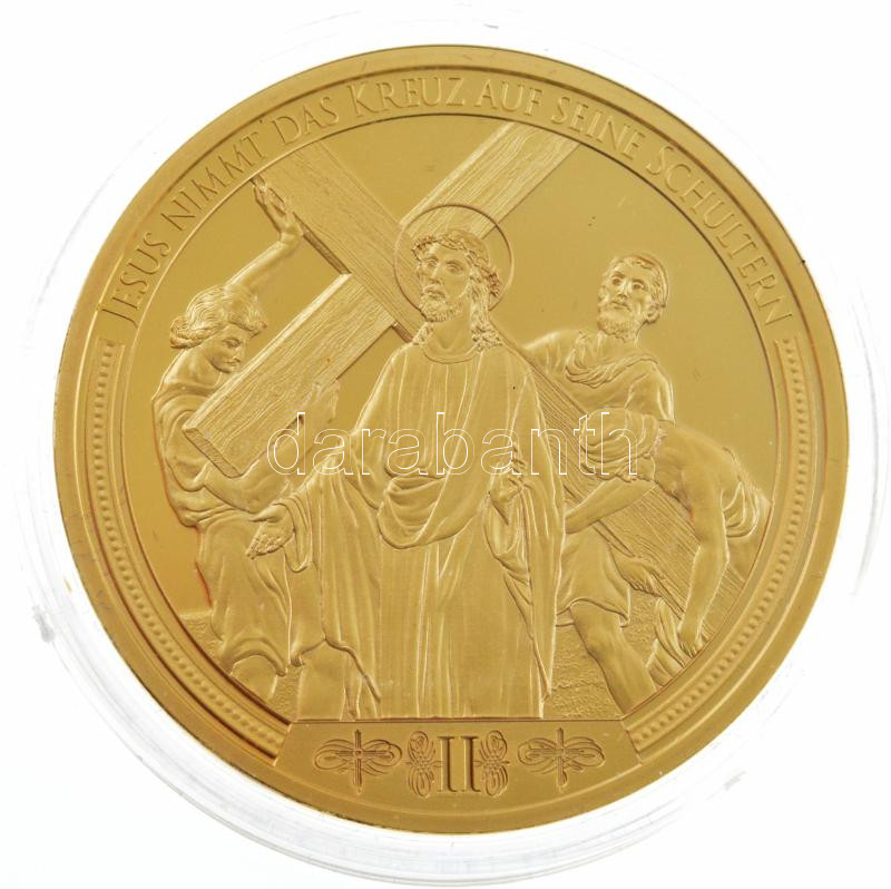 Vatikán DN "Kreuzweg Christi / Jesus nimmt das kreuz aus seine schultern" aranyozott Cu emlékérem Swarowski kristállyal kapszulában (40mm) T:PP