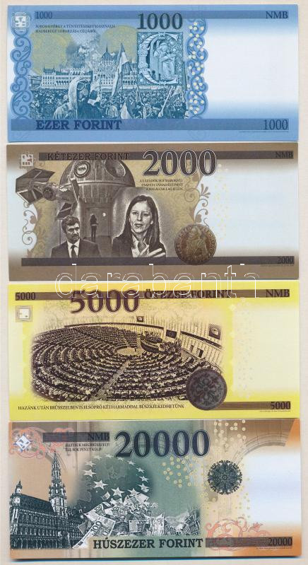 Beschreibung: 2018. "Soros pénz" 1000Ft + 2000Ft + 5000Ft + 20.000Ft fantázia bankjegy T:I