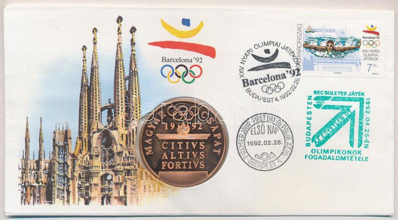 1992. Papp László (1947-) "Barcelonai Olimpia- Magyar Csapat" bronz emlékérem érmés borítékban, bélyeggel, első napi és alkalmi bélyegzéssel (42,5mm) T:1