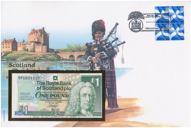 Beschreibung: Skócia 1999. 1P felbélyegzett borítékban, bélyegzéssel T:I Scotland 1999. 1 Pound in envelope with stamp and cancellation C:UNC