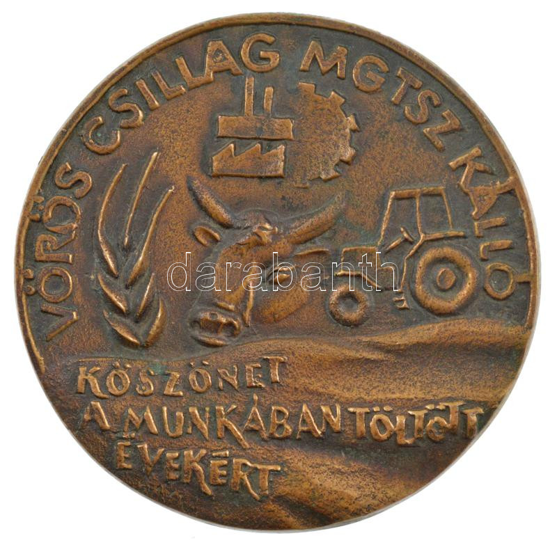 DN "Vörös Csillag MGTSZ Kálló - Köszönet a munkában töltött évekért" egyoldalas bronz emlékérem (92mm) T:1- kis patina