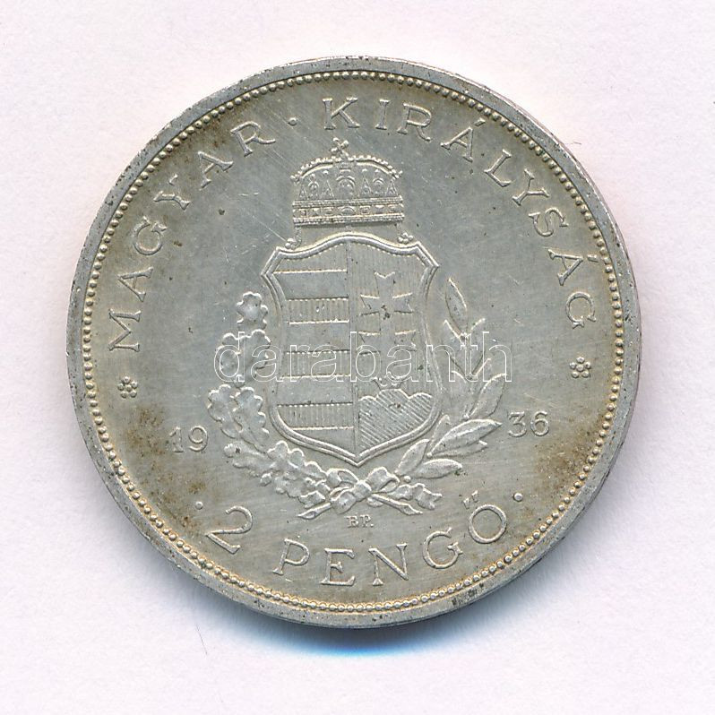 Adamo P7.3 https://www.darabanth.com/de/431-Fernauktion/431.0/Numismatik/Ungarische-Munzen-und-Munzen-mit-ungarischem-Munzzeichen~1500008/1936-2P-Ag-Liszt-T1-patina-Adamo-P73~II2772492