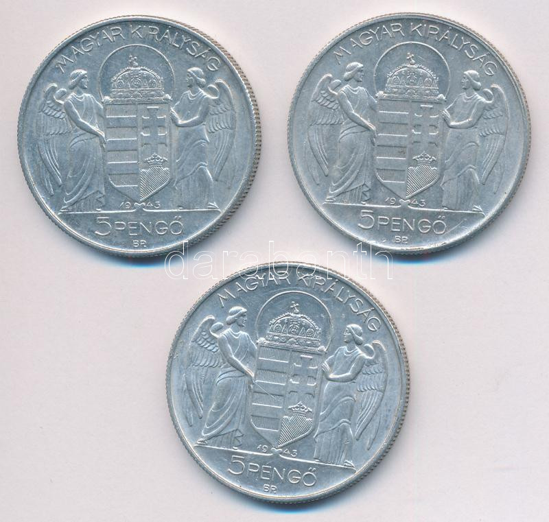1943. 5P Al "Horthy Miklós születésének 75. évfordulójára" (... https://www.darabanth.com/de/431-Fernauktion/431.0/Numismatik/Ungarische-Munzen-und-Munzen-mit-ungarischem-Munzzeichen~1500008/1943-5P-Al-Horthy-Miklos-szuletesenek-75-evfordulojara-3x-T1-2--Adamo-P83~II2765930