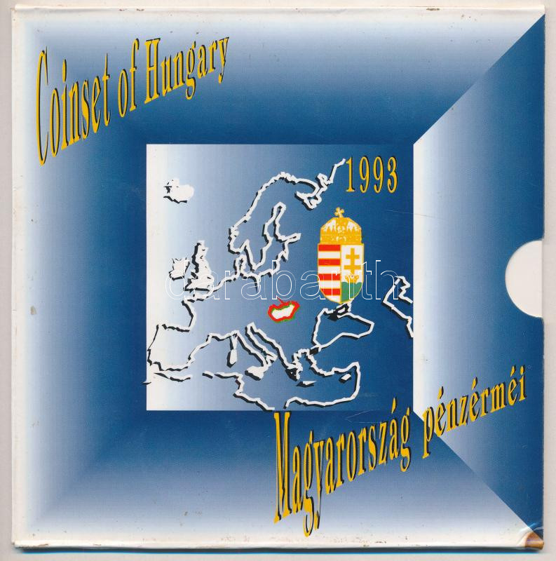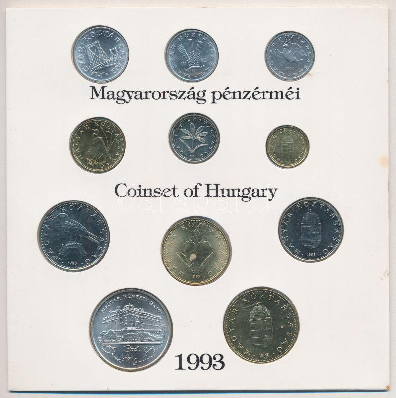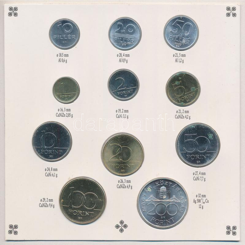 1993. 10f-200Ft (11xklf) forgalmi sor dísztokban, benne 1993. 200Ft Ag "MNB", "Magyarország pénzérméi" sorozat, a karton dísztokon a ragasztás kissé elengedett, külső borítón szennyeződés T:BU patina Adamo FO26
