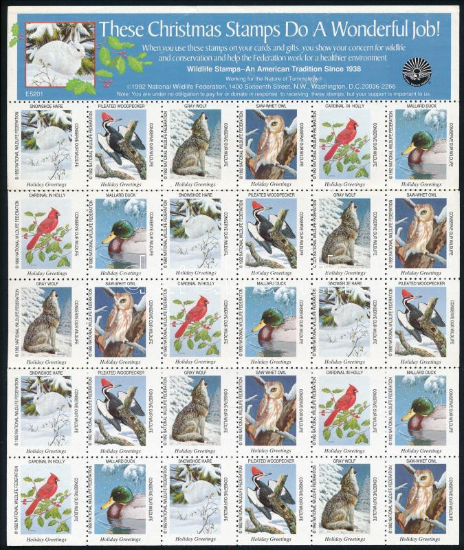 Beschreibung: Amerikai Egyesült Államok 1992 Karácsony, állatok 30 darabos levélzáró ív