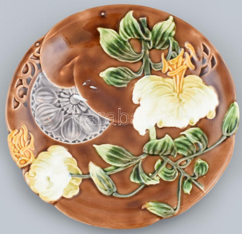 Szecessziós majolika tányér, jelzett, hibátlan, d: 18,5 cm https://www.darabanth.com/de/431-Fernauktion/431.0/Porzellan-Keramik-Glass/Keramiken~5000007/Szecesszios-majolika-tanyer-jelzett-hibatlan-d-18-5-cm~II2765755