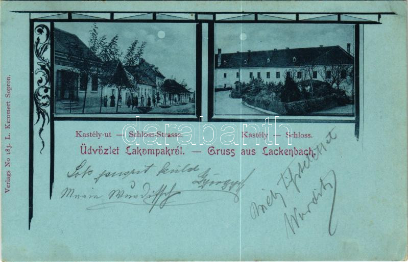 1901 Lakompak, Lackenbach; Kastély út, Esterházy kastély. L. Kummert k... https://www.darabanth.com/de/432-Fernauktion/432.0/Ansichtskarten/Burgenland~2000011/1901-Lakompak-Lackenbach-Kastely-ut-Esterhazy-kastely-L-Kummert-kiadasa-Schloss-Strasse-~II2786944