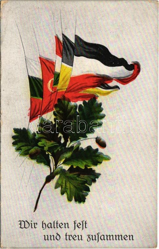 1916 Wir halten fest und treu zusammen / Központi hatalmak zászlói / W... https://www.darabanth.com/de/432-Fernauktion/432.0/Ansichtskarten/Flaggen-Wappen~2000055/1916-Wir-halten-fest-und-treu-zusammen-Kozponti-hatalmak-zaszloi-WWI-Flags-of-the-Central-Pow~II2784983