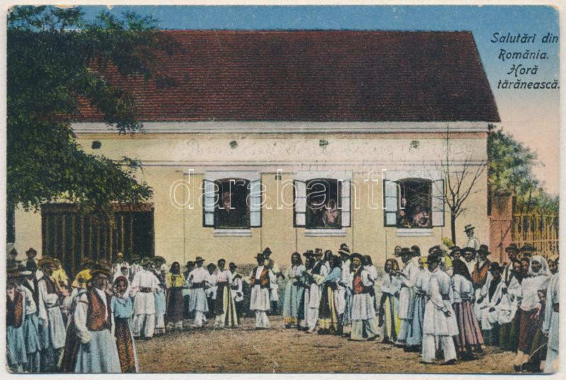 1918 Salutari din Romania. Hora taraneasca / Romanian folklore, folk d... https://www.darabanth.com/de/432-Fernauktion/432.0/Ansichtskarten/Folklore~2000023/1918-Salutari-din-Romania-Hora-taraneasca-Romanian-folklore-folk-dance-plus-KUK-FELDPOSTAMT-556~II2777833