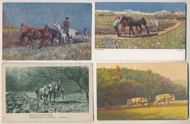 Beschreibung: 4 db RÉGI folklór motívum képeslap: szántás / 4 pre-1945 folklore motive postcards: ploughing (plowing)