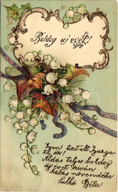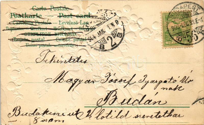 1903 Boldog Újévet! / New Year greeting art postcard. Art Nouveau, flo... https://www.darabanth.com/de/432-Fernauktion/432.0/Ansichtskarten/GruC39Fkarten-Feste~2000051/1903-Boldog-Ujevet-New-Year-greeting-art-postcard-Art-Nouveau-floral-Emb-litho-lyuk-pinh~II2786942