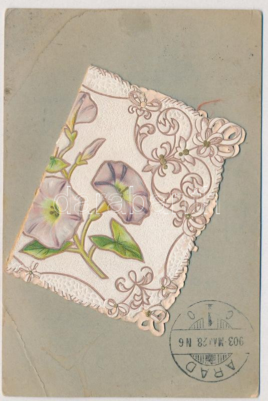 Beschreibung: 1903 Greeting card with letter. Art Nouveau, Emb. floral, litho (EB)
