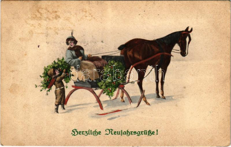 1917 Herzliche Neujarhsgrüße! / New Year greeting art postcard with ho... https://www.darabanth.com/de/432-Fernauktion/432.0/Ansichtskarten/GruC39Fkarten-Feste~2000051/1917-Herzliche-NeujarhsgruC39Fe-New-Year-greeting-art-postcard-with-horse-drawn-sled-M-Munk-Wien~II2782090