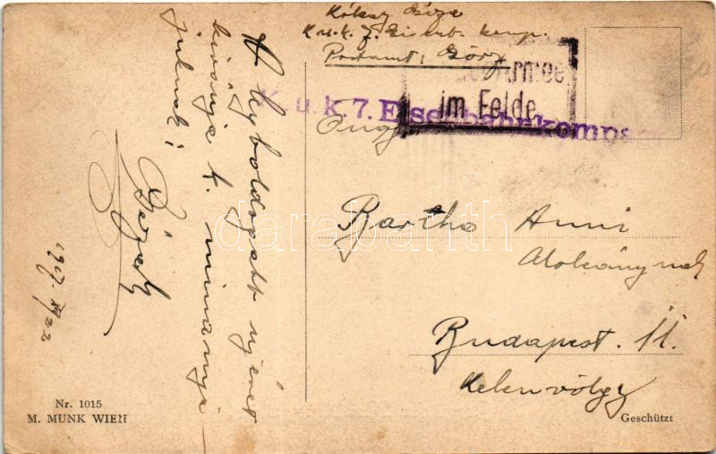 Beschreibung: 1917 Herzliche Neujarhsgrüße! / New Year greeting art postcard with horse-drawn sled. M. Munk Wien Nr. 1015. + "K.u.K. 7. Eisenbahnkompagnie" (fl)