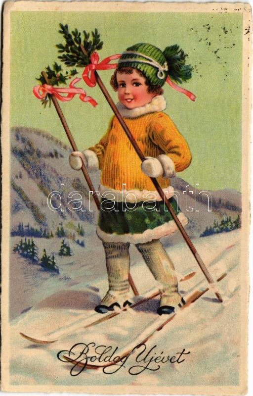 1934 Boldog újévet! síelő leány / New Year, skiing girl. Erika Nr. 501... https://www.darabanth.com/de/432-Fernauktion/432.0/Ansichtskarten/GruC39Fkarten-Feste~2000051/1934-Boldog-ujevet-sielo-leany-New-Year-skiing-girl-Erika-Nr-5016-litho-EK-plus-KELEBIA-~II2784977