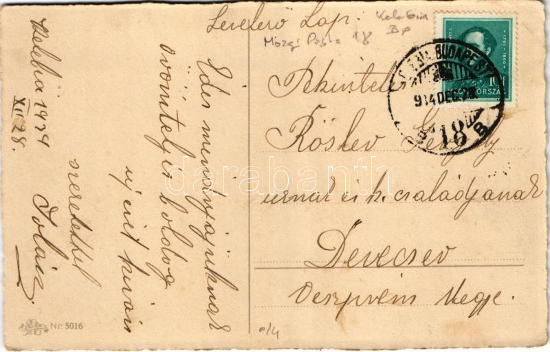 Beschreibung: 1934 Boldog újévet! síelő leány / New Year, skiing girl. Erika Nr. 5016. litho (EK) + "KELEBIA-BUDAPEST 18" vasúti mozgóposta