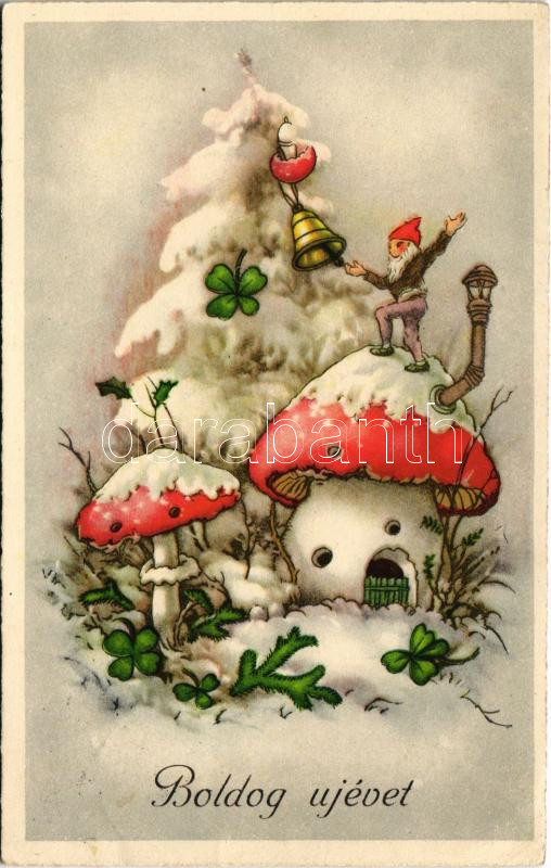 1943 Boldog újévet! Törpe gombaházzal / New Year greeting, dwarf with ... https://www.darabanth.com/de/432-Fernauktion/432.0/Ansichtskarten/GruC39Fkarten-Feste~2000051/1943-Boldog-ujevet-Torpe-gombahazzal-New-Year-greeting-dwarf-with-mushroom-house-EK~II2780368