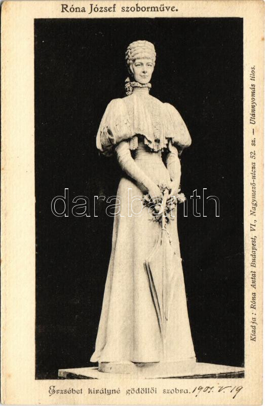 1901 Gödöllő, Erzsébet királyné szobor (Sissi). Róna József szoborműve. Róna Antal kiadása / Königin Elisabeth (Sisi) Monument / Empress Elisabeth of Austria statue (r)
