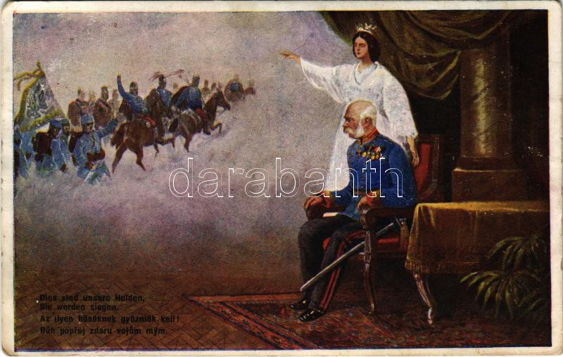 Dies sind unsere Helden! / Ezek a magyar harcosok! Ferenc József / WWI Austro-Hungarian K.u.K. military art postcard, Franz Joseph I of Austria, patriotic propaganda. G.G.W.II. Nr. 13. (EK)