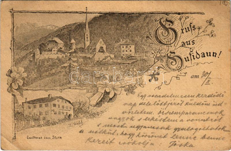 1900 Gudon, Gufidaun (Chiusa, Klausen; Südtirol); Gasthaus zum Stern /... https://www.darabanth.com/de/432-Fernauktion/432.0/Ansichtskarten/Italien~2000078/1900-Gudon-Gufidaun-Chiusa-Klausen-Sudtirol-Gasthaus-zum-Stern-general-view-inn-Art-Nouve~II2785077