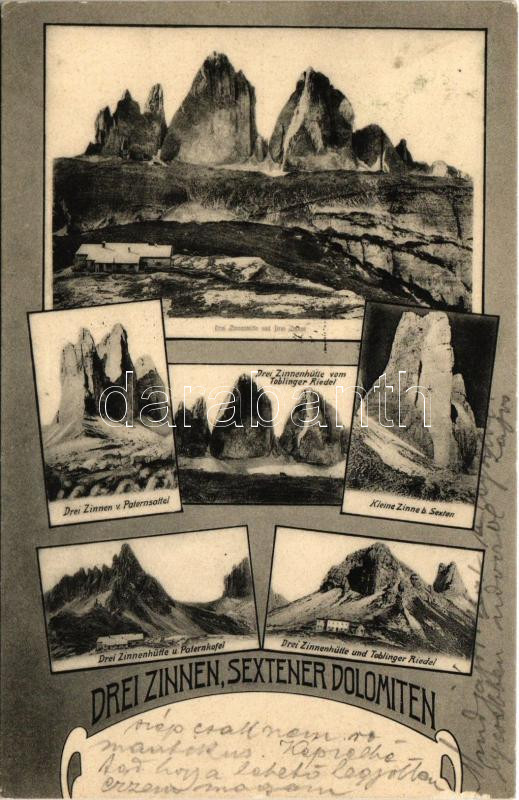1908 Tre Cime di Lavaredo, Drei Zinnen (Südtirol); Sextener Dolomiten.... https://www.darabanth.com/de/432-Fernauktion/432.0/Ansichtskarten/Italien~2000078/1908-Tre-Cime-di-Lavaredo-Drei-Zinnen-Sudtirol-Sextener-Dolomiten-Art-Nouveau~II2784749