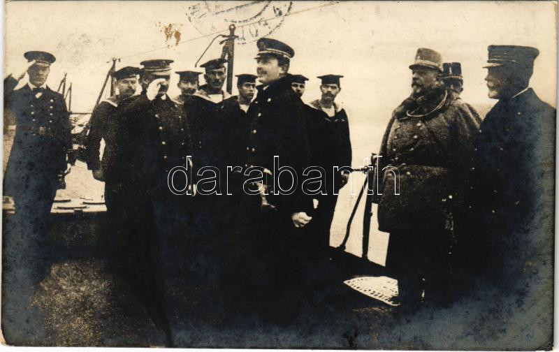 1915 SMS Viribus Unitis Osztrák-Magyar Haditengerészet Tegetthoff-osztályú dreadnought csatahajója fedélzetén IV. Károly és Anton Haus / Erzherzog Karl Franz Josef auf S.M. Schiff "Viribus Unitis" / WWI Austro-Hungarian Navy K.u.K. Kriegsmarine, Charles IV and Admiral Anton Haus on the board of SMS Viribus Unitis. Offizielle Postkarte des Österreichischen Flottenvereines für Rotes Kreuz, Kriegsfürsorgeamt, Kriegshilfsbüro + "ZENSURIERT SMS ERZH. KARL" (EK)