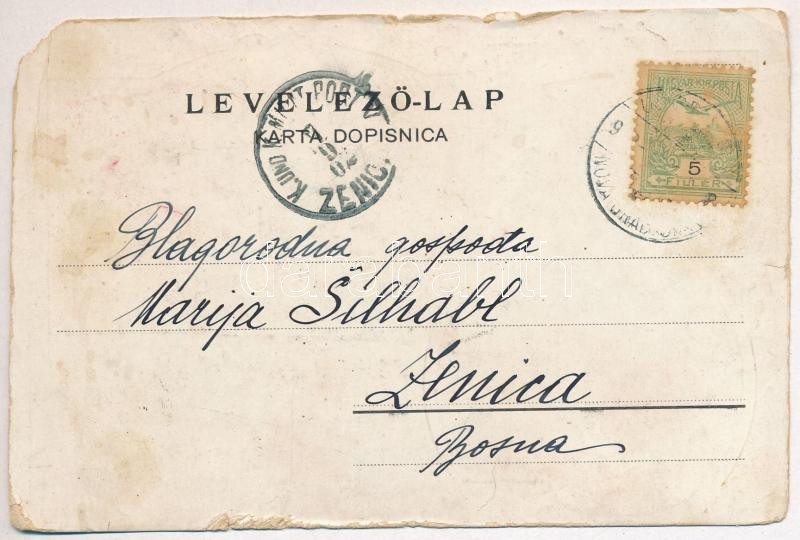 1902 Újgradiska, Novagradiska, Nova Gradiska; Domobranska vojarna, Trg Franje Josipa, Pozeska ulica / K.u.K. military barracks, square, street view. Art Nouveau, floral (b)