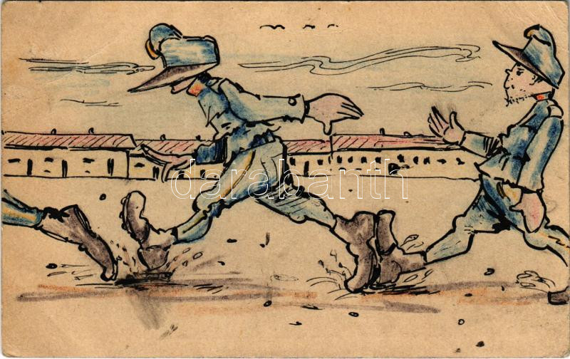 Beschreibung: 1899 (Vorläufer) Kézzel rajzolt osztrák-magyar katonai művészlap / Austro-Hungarian K.u.K. military, hand-drawn art postcard (EB)