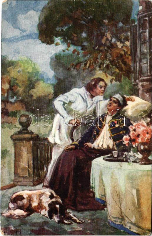 Beschreibung: 1915 Visszatért hős. Osztrák-magyar romantikus katonai lap / WWI K.u.k. military romantic with injured soldiers s: Gergely (EK)