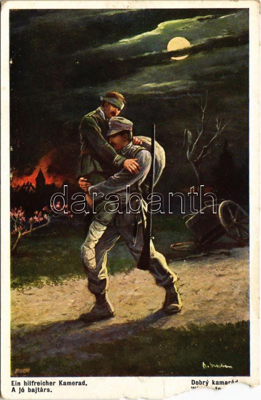 A jó bajtárs. Első világháborús osztrák-magyar katonai művészlap / Ein... https://www.darabanth.com/de/432-Fernauktion/432.0/Ansichtskarten/Militaria~2000033/A-jo-bajtars-Elso-vilaghaborus-osztrak-magyar-katonai-muveszlap-Ein-hilfreicher-Kamerad-~II2786172