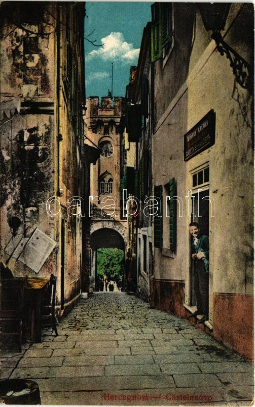Beschreibung: 1916 Herceg Novi, Castelnuovo; street, restaurant (fa)