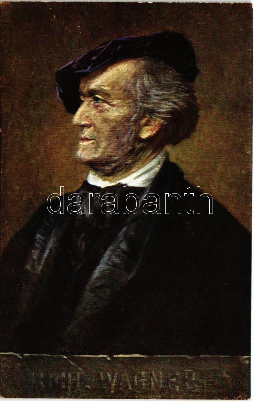 Beschreibung: Richard Wagner (1813-1883) német zeneszerző és karmester, Liszt Ferenc lánya Cosima volt a felesége. B.K.W.I. Serie 874/9
