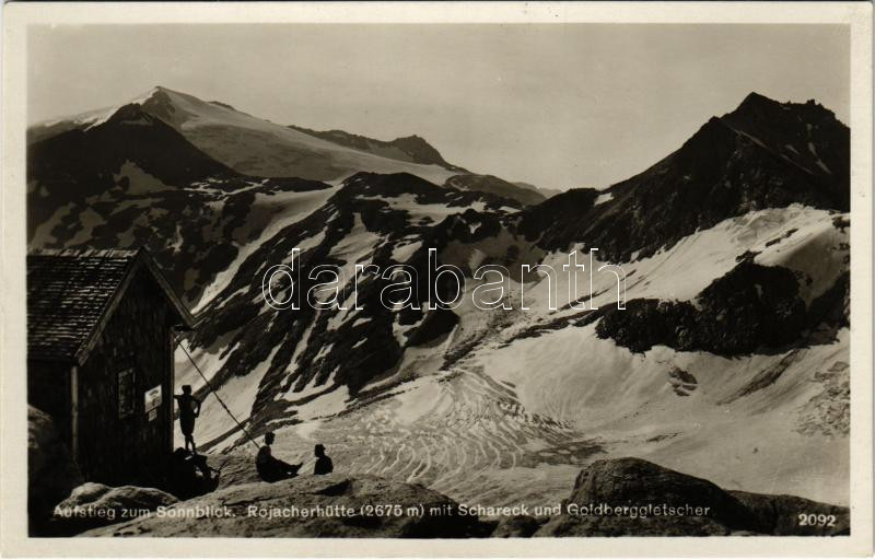 1933 Hoher Sonnblick, Aufstieg zum Sonnblick. Rojacherhütte mit Schare... https://www.darabanth.com/de/432-Fernauktion/432.0/Ansichtskarten/Osterreich~2000059/1933-Hoher-Sonnblick-Aufstieg-zum-Sonnblick-Rojacherhutte-mit-Schareck-und-Goldberggletscher-to~II2775745