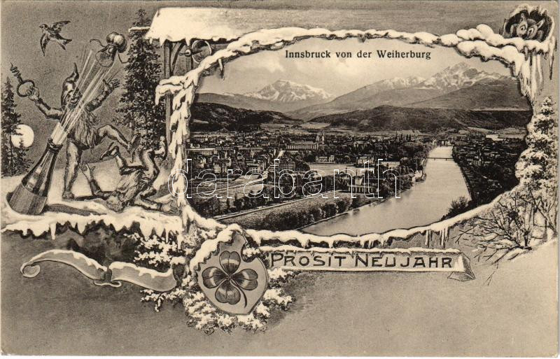 Innsbruck von der Weiherburg. Prosit Neujahr / New Year greeting monta... https://www.darabanth.com/de/432-Fernauktion/432.0/Ansichtskarten/Osterreich~2000059/Innsbruck-von-der-Weiherburg-Prosit-Neujahr-New-Year-greeting-montage~II2715648