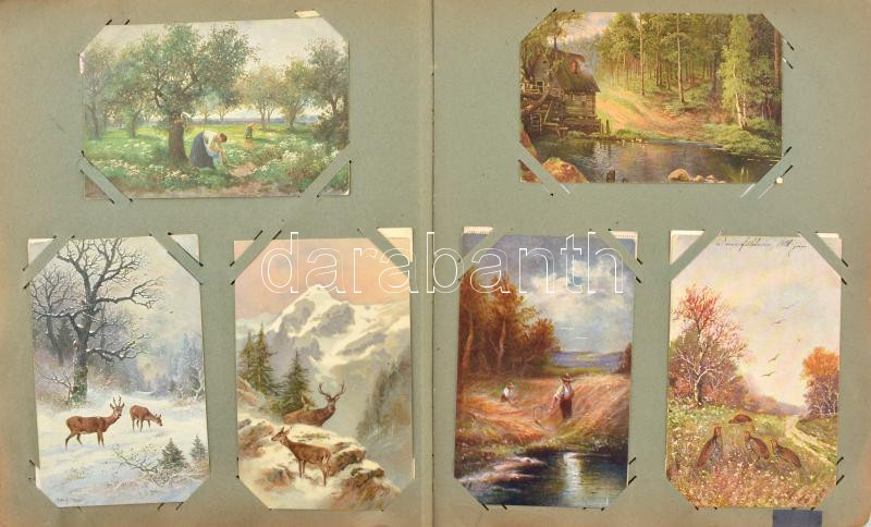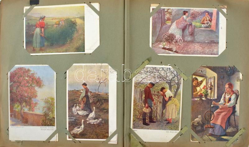 Kb. 151 db RÉGI művész motívum képeslap régi albumban: üdvözlő és fest... https://www.darabanth.com/de/432-Fernauktion/432.0/Ansichtskarten/Postkartensammlungen-Lose~2000003/Kb-151-db-REGI-muvesz-motivum-kepeslap-regi-albumban-udvozlo-es-festmeny-Cca-151-pre~II2779480