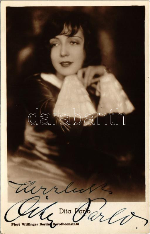Dita Parlo, German film actress. Phot. Willinger, Berlin + autograph s... https://www.darabanth.com/de/432-Fernauktion/432.0/Ansichtskarten/Schauspieler-Schauspielerin~2000048/Dita-Parlo-German-film-actress-Phot-Willinger-Berlin-plus-autograph-signature~II2785361