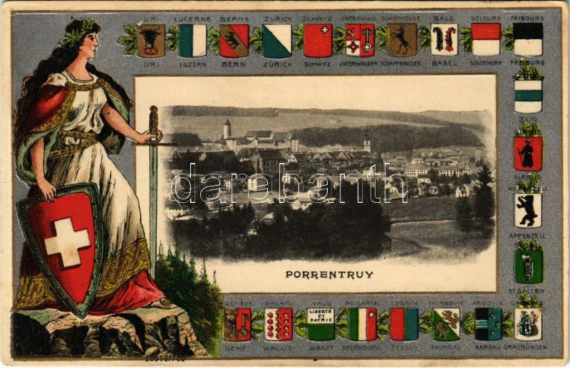 Porrentruy, general view with coats of arms of the Swiss cantons. Edit... https://www.darabanth.com/de/432-Fernauktion/432.0/Ansichtskarten/Schweiz~2000084/Porrentruy-general-view-with-coats-of-arms-of-the-Swiss-cantons-Edition-Guggenheim-Co-Art-Nouve~II2775775