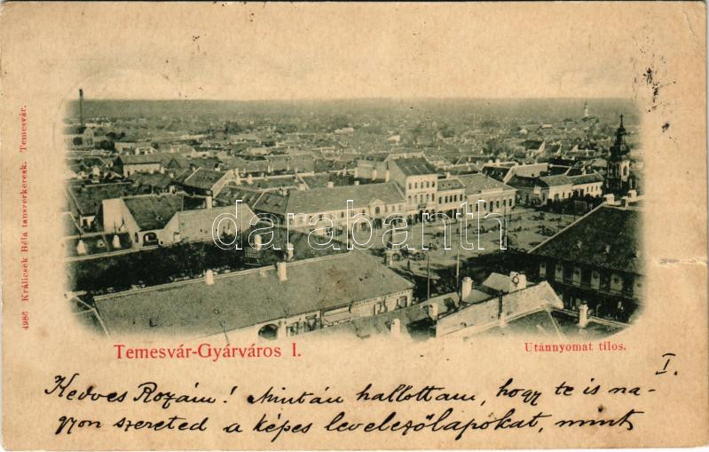 Beschreibung: 1899 (Vorläufer) Temesvár, Timisoara; Gyárváros I. Králicsek Béla kiadása / Fabric (szakadás / tear)