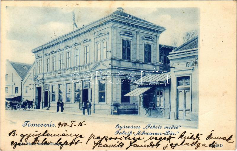 1900 Temesvár, Timisoara; Fabrik Schwarzer Bär, Dreher Haupt-Bierdepot... https://www.darabanth.com/de/432-Fernauktion/432.0/Ansichtskarten/Siebenburgen~2000006/1900-Temesvar-Timisoara-Fabrik-Schwarzer-Bar-Dreher-Haupt-Bierdepot-Gyarvaros-Dreher-sorg~II2786947