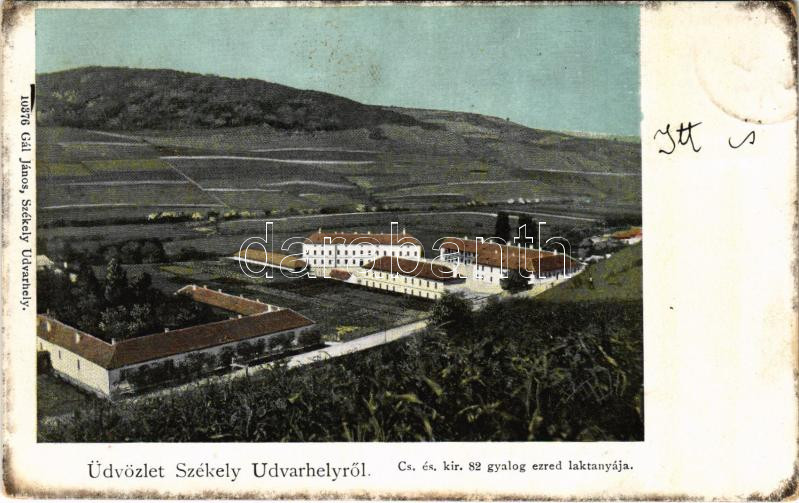 1901 Székelyudvarhely, Odorheiu Secuiesc; Cs. és kir. 82. gyalogezred ... https://www.darabanth.com/de/432-Fernauktion/432.0/Ansichtskarten/Siebenburgen~2000006/1901-Szekelyudvarhely-Odorheiu-Secuiesc-Cs-es-kir-82-gyalogezred-laktanyaja-Gal-Janos-kia~II2784322