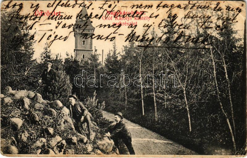 1906 Nagykároly, Carei; Gróf Károlyi kastély park részlete kirándulókk... https://www.darabanth.com/de/432-Fernauktion/432.0/Ansichtskarten/Siebenburgen~2000006/1906-Nagykaroly-Carei-Grof-Karolyi-kastely-park-reszlete-kirandulokkal-Csokas-Laszlo-k~II2777005